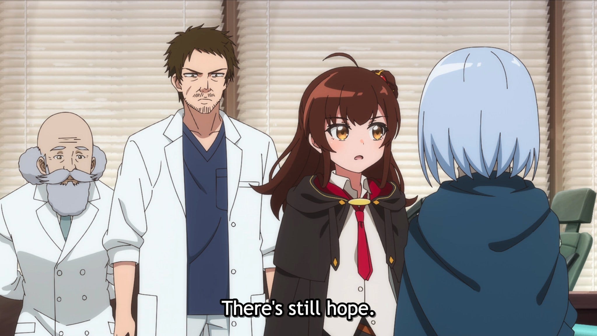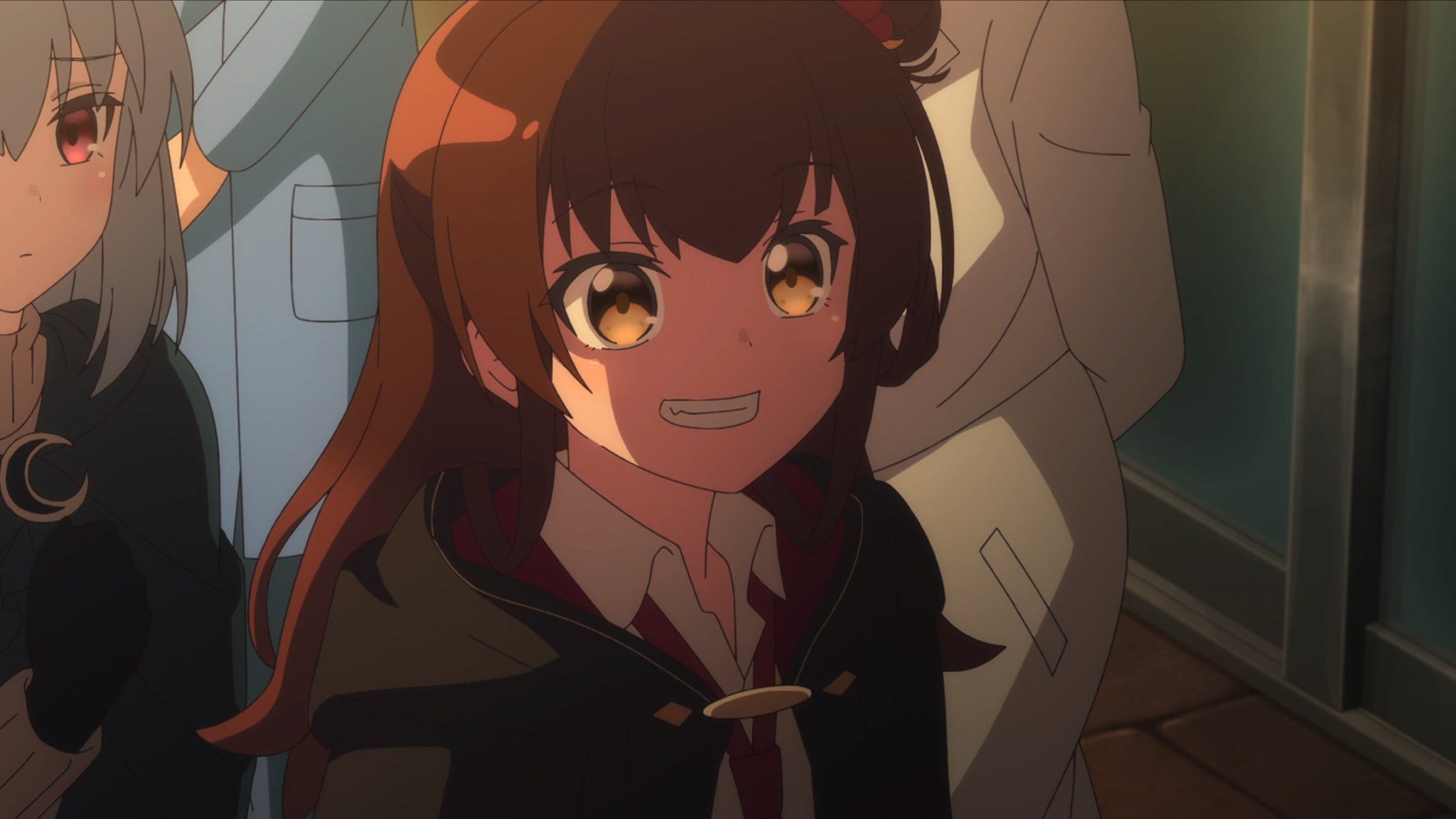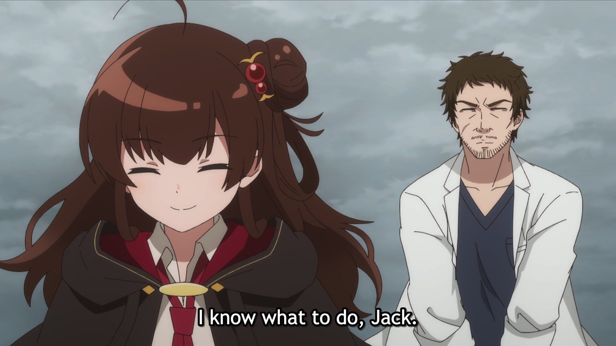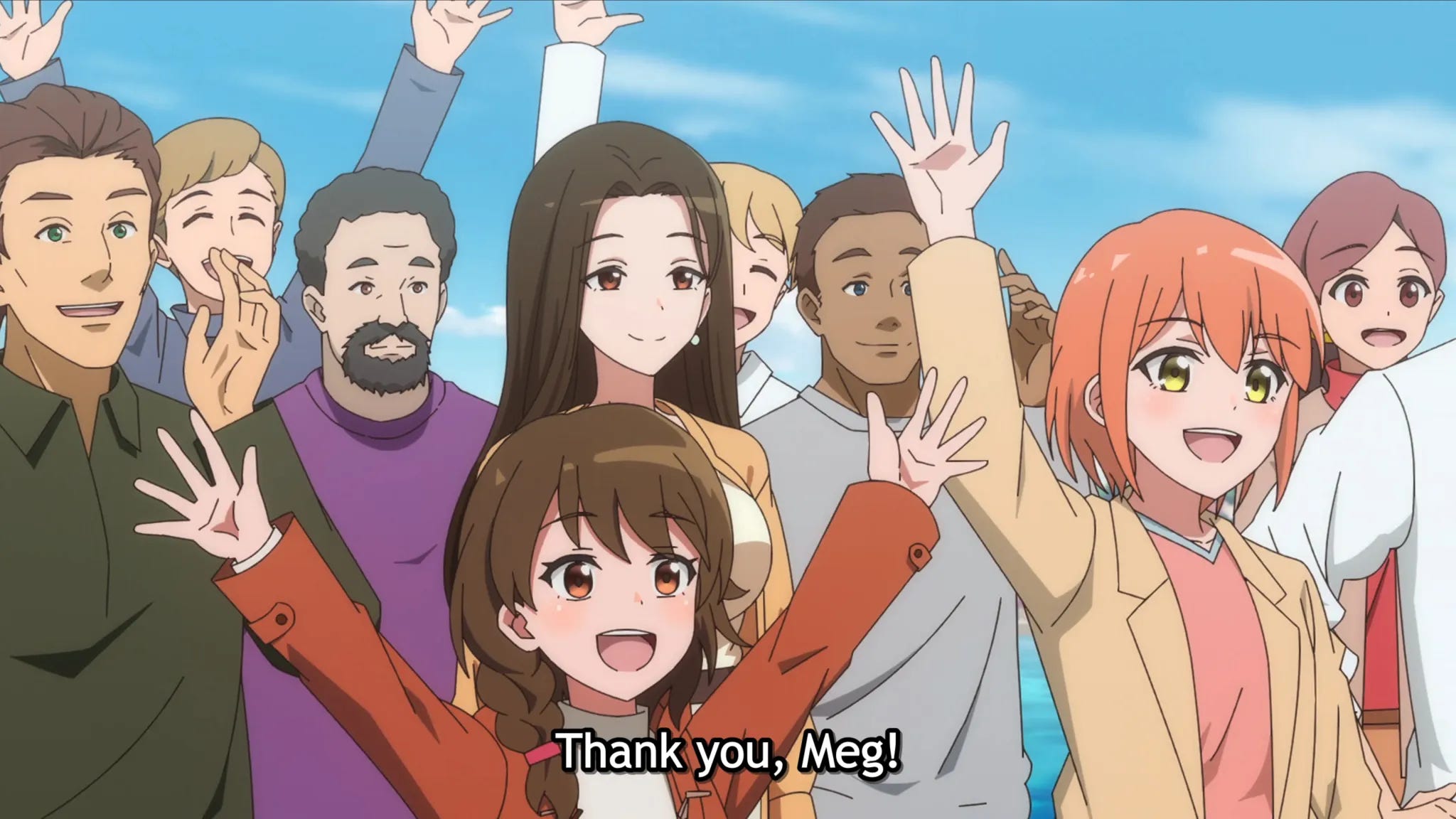 From the very beginning of the series, Meg has wanted to venture out and see the world. It was a dream so precious that, when given her death sentence, she buried it deep, deep down so that she couldn’t even admit to herself (or Inori) how much she wanted it. It hurt her even to imagine the possibility. Since those early episodes, though, Meg has gradually been broadening her world, spending time in her village, then venturing further afield out of necessity (thanks to Faust, sending her off to various places like that…such a wise mentor), until she finds herself here now, far from Lapis on the island of Aquamarine, helping the folks there as if they were her own. So Meg’s claim to the whole world here speaks of a dream restored! It has taken an entire season, but Meg has at last lifted up her head again and is gazing out at the horizon. And indeed, in the final episode, Meg finds the courage to set off alone into the world as she’s always longed to do. I think she’s able to do so because of this revelation at the bell tower.