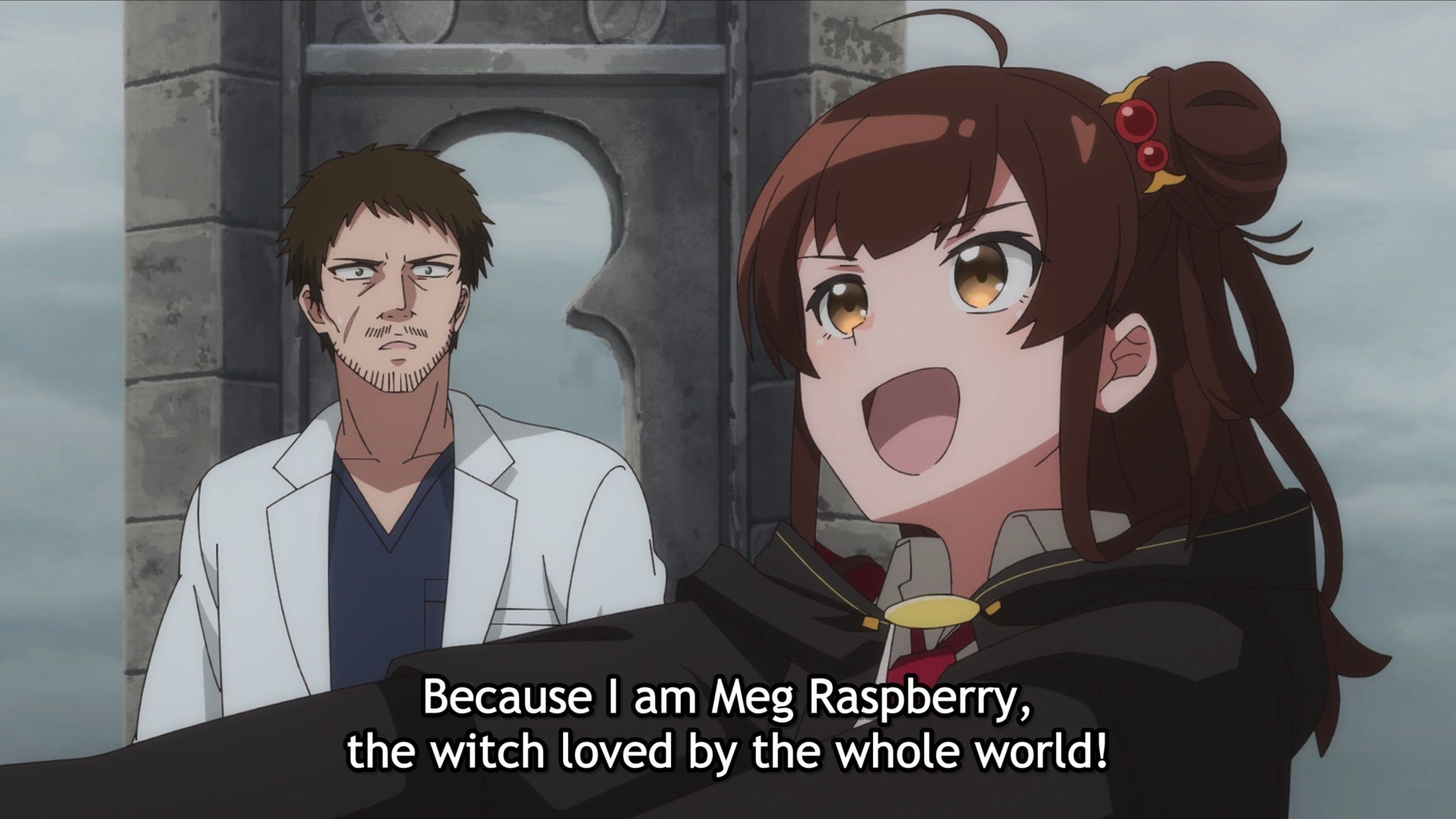 Let’s keep going. Meg specifically calls herself a “witch loved by the whole world.” This is quite distinct from her actual witch name, the Witch of Lapis, which the people of her hometown gifted her with halfway through the series. Is this just Meg’s penchant for showmanship leading her into the realm of hyperbole? I don’t think so.