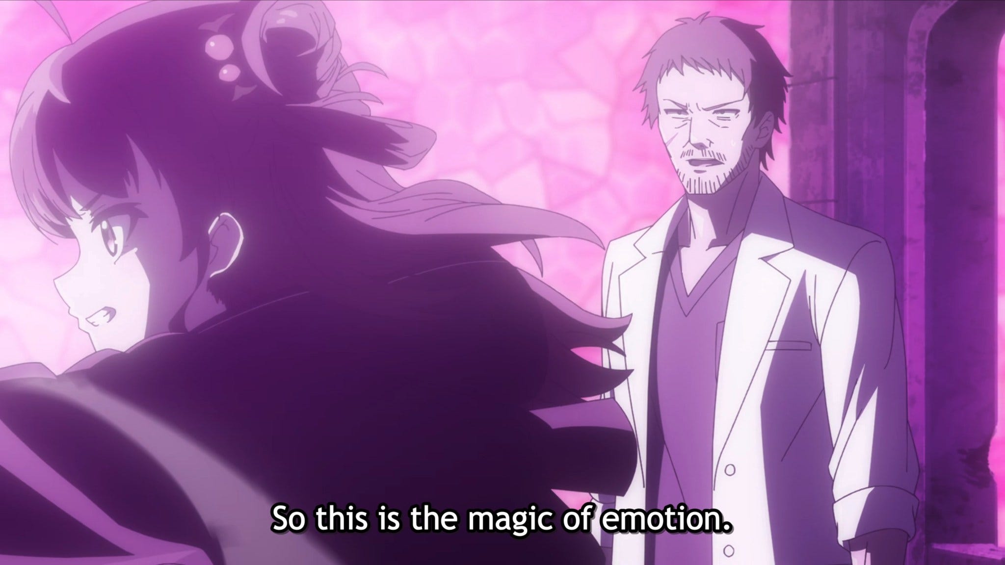 There is no dialogue during Meg’s moment of revelation, so when she does finally speak, one would expect her to narrate the connections she’s just made between all the plot points that have been unfolding for the past few episodes. And indeed, Meg does begin by saying to her companion, “I know what to do, Jack…I’m going to use the magic of emotion.” But then her dialogue takes an odd turn, and instead of outlining triumphantly what this entails and how it will solve the problem (for instance, whose emotions will she draw upon, and which ones? The Sages? The people? Tethys? Love for the city? Love for life? For one another?), Meg’s speech culminates in a joyous declaration of who she is, “Because I am Meg Raspberry, the witch loved by the whole world!” In other words, she celebrates her identity as the solution. To paraphrase, Meg essentially exclaims, “I know who I am! That’s how I will save everyone!”