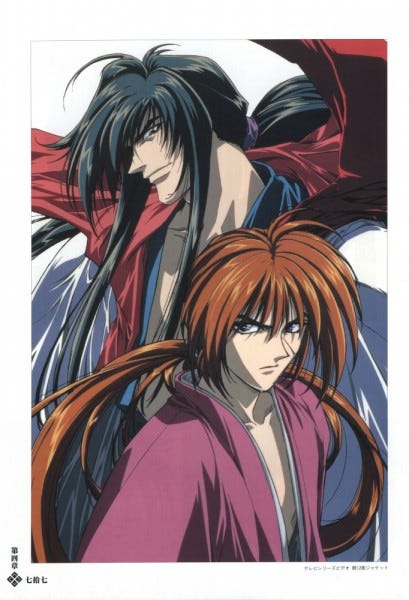 Kenshin had his reverse-blade sword broken by Sōjirō, so he sought a new blade from the swordsmith’s son and additional training from Master Hiko. Only then could he defeat his greatest enemy, the mummy-like Makoto Shishio.